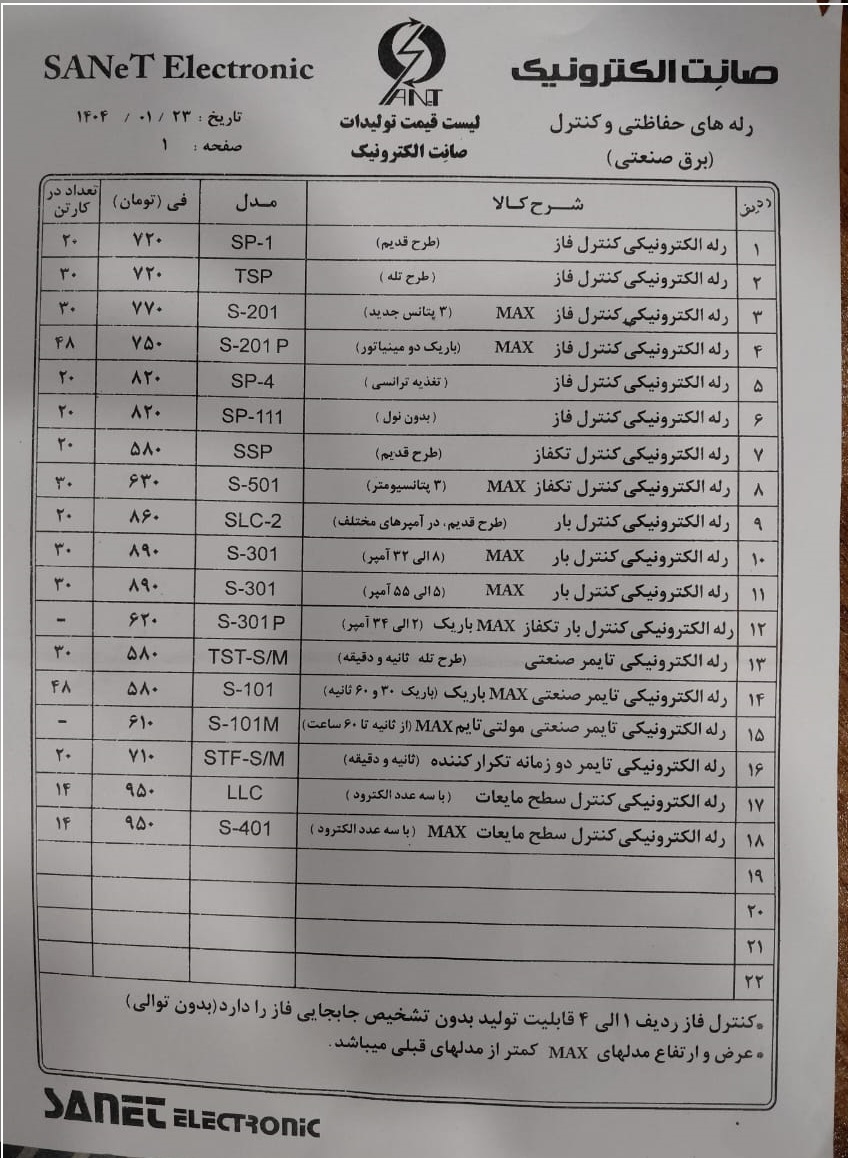 رله الکترونیکی کنترل فاز (طرح قدیم) کد sp-1 صانت الکترونیک