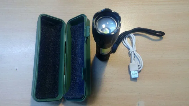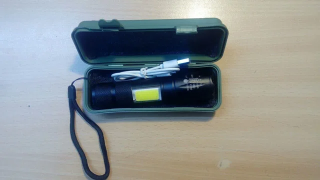 چراغ اضطراری با نور سفید در بدنه چراغ قوه و سیم شارژر
